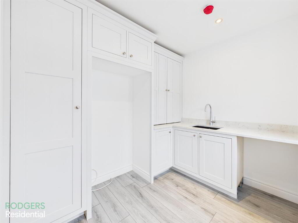 A Range Of High & Low Custom Made Shaker Style Kitchen Cabinets, Quartz Work Surfaces With Up Stands, Undermounted Sink With Chrome Mixer Tap, Space For Washing Machine, Space For Fridge/Freezer, Access To Rear Of Property